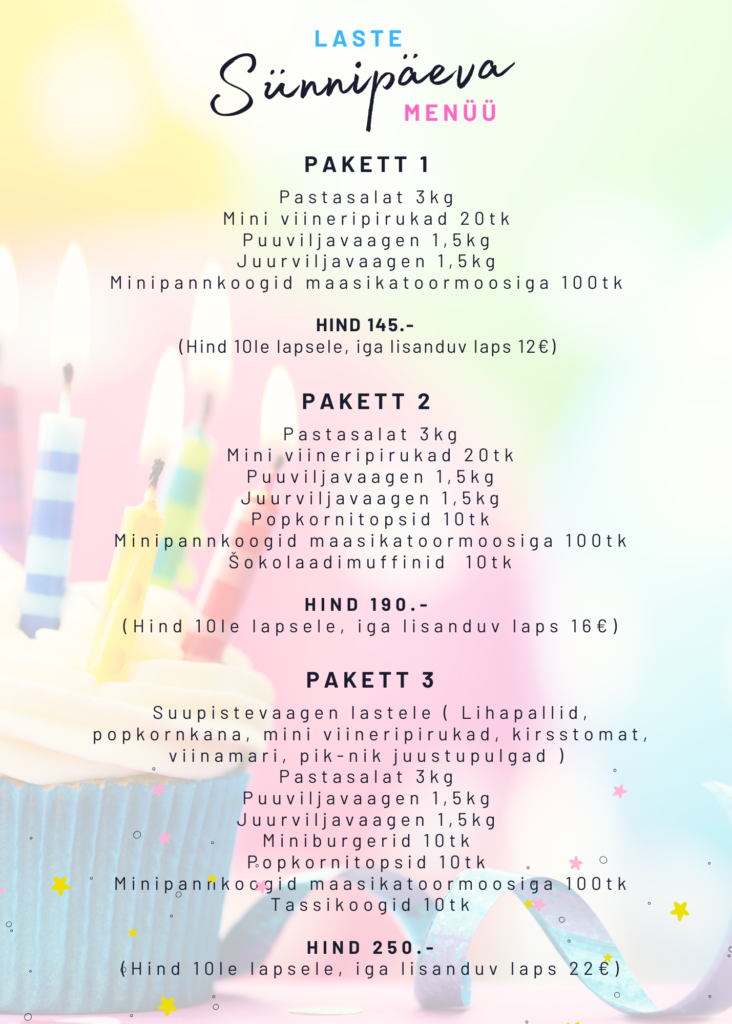 Päringud saab saata kohvik@alicebackyard.ee ja rohkem infot veebilehel https://alicebackyard.ee/catering/